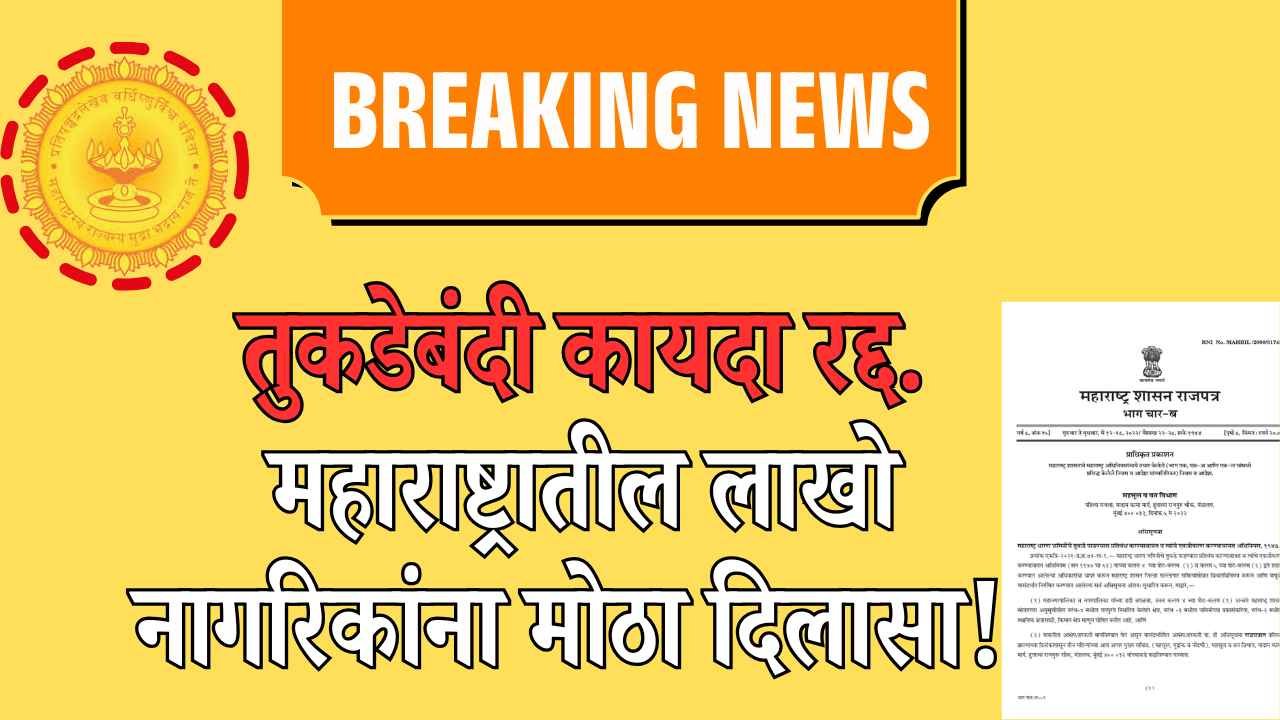 महाराष्ट्रातील लाखो नागरिकांना मोठा दिलासा! तुकडेबंदी कायदा रद्द. TUKADEBANDI KAYADA