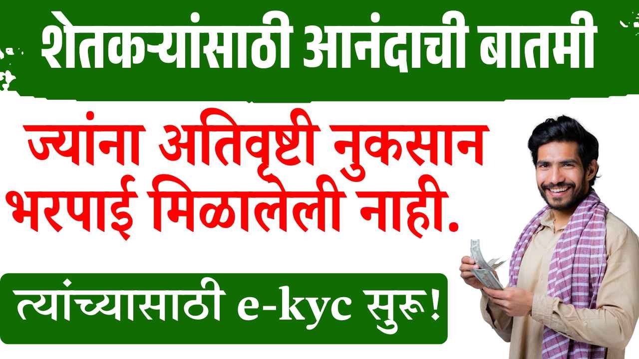 शेतकरी बंधूनसाठी आनंदाची बातमी. ज्यांना अतिवृष्टी नुकसान भरपाई मिळालेली नाही. त्यांच्यासाठी e-kyc सुरू. anudan e-KYC update